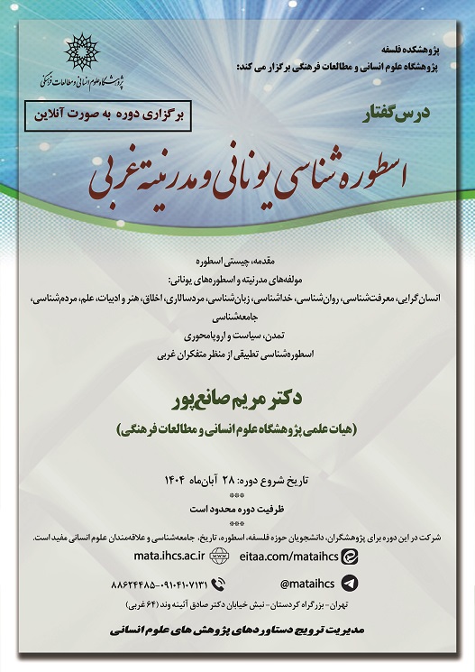 دوره آموزشی «درسگفتار اسطورهشناسی یونانی و مدرنیته غربی» توسط پژوهشکده فلسفه پژوهشگاه علوم انسانی و مطالعات فرهنگی از تاریخ 28 آبانماه 1404 بصورت مجازی شروع میشود.