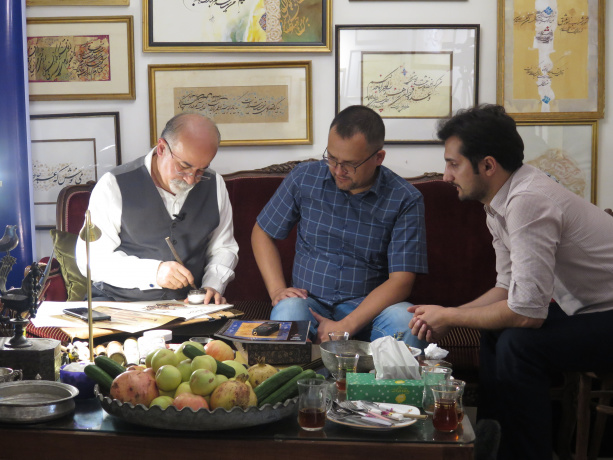 استادان کارگاه ایرانشناسی بعد از ظهر یکشنبه ۱۴ مهر ۹۸، راهی کارگاه خوشنویسی استاد اسرافیل شیرچی، شکستهنویس برجسته ایرانی شدند و در حال و هوای سرشار از شعر و شعور و شعف مشق استاد را استشمام کردند.
