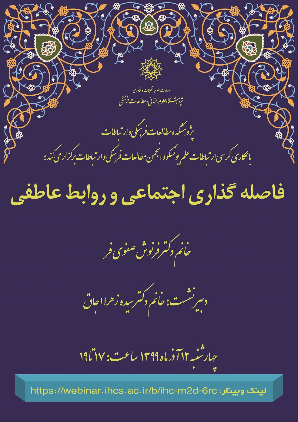 سخنرانی «فاصلهگذاری اجتماعی و روابط عاطفی» برگزار میشود