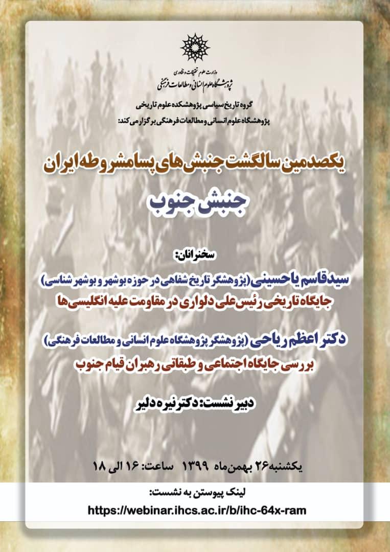 یکصدمین سالگشت جنبشهای پسامشروطهی ایران، جنبش جنوب برگزار میشود