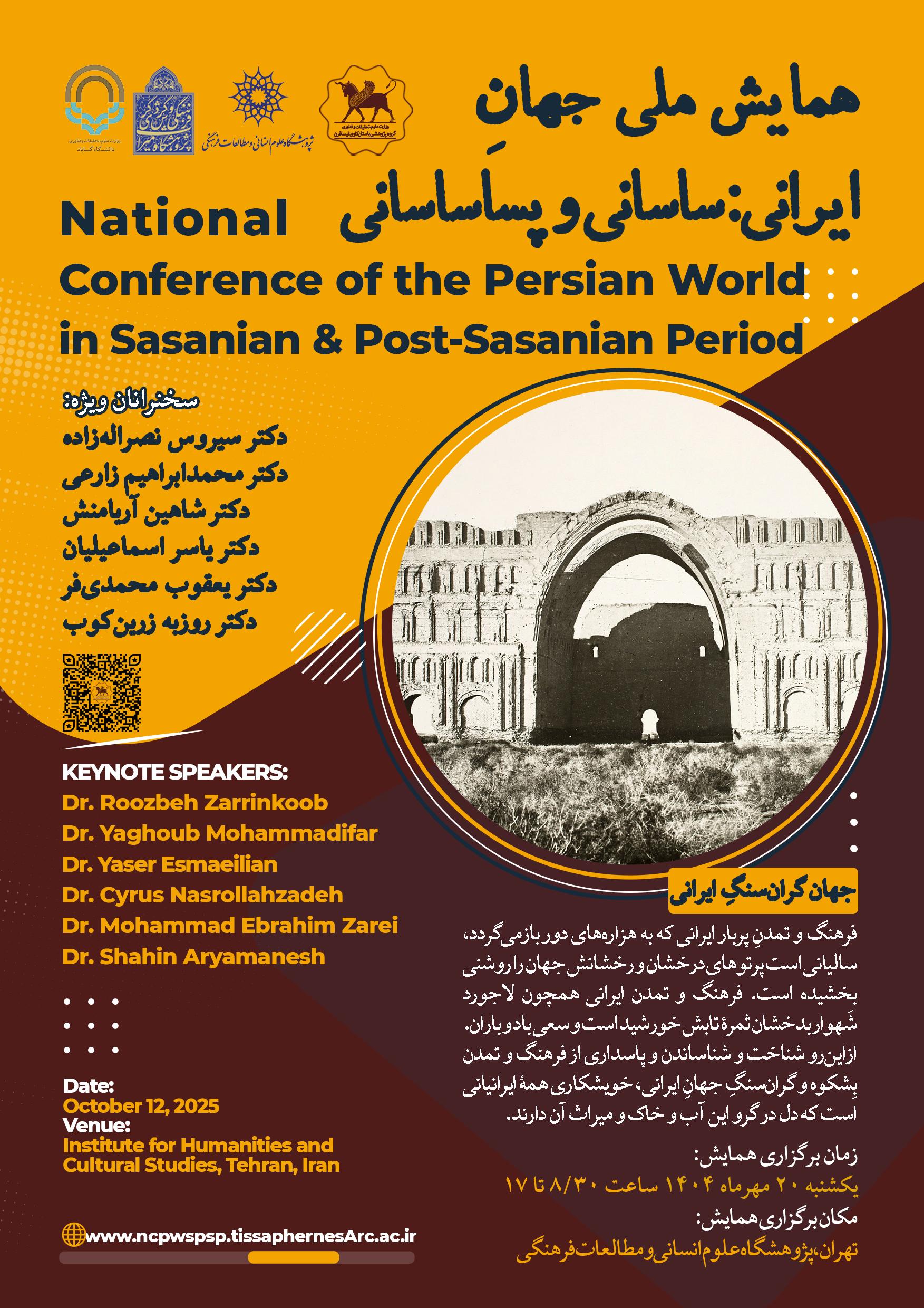 همایش ملی «جهانِ ایرانی؛ ساسانی و پساساسانی» با سخنرانی 24 ایرانشناس، 20 مهرماه 1404 در پژوهشگاه علوم انسانی و مطالعات فرهنگی برگزار میشود.