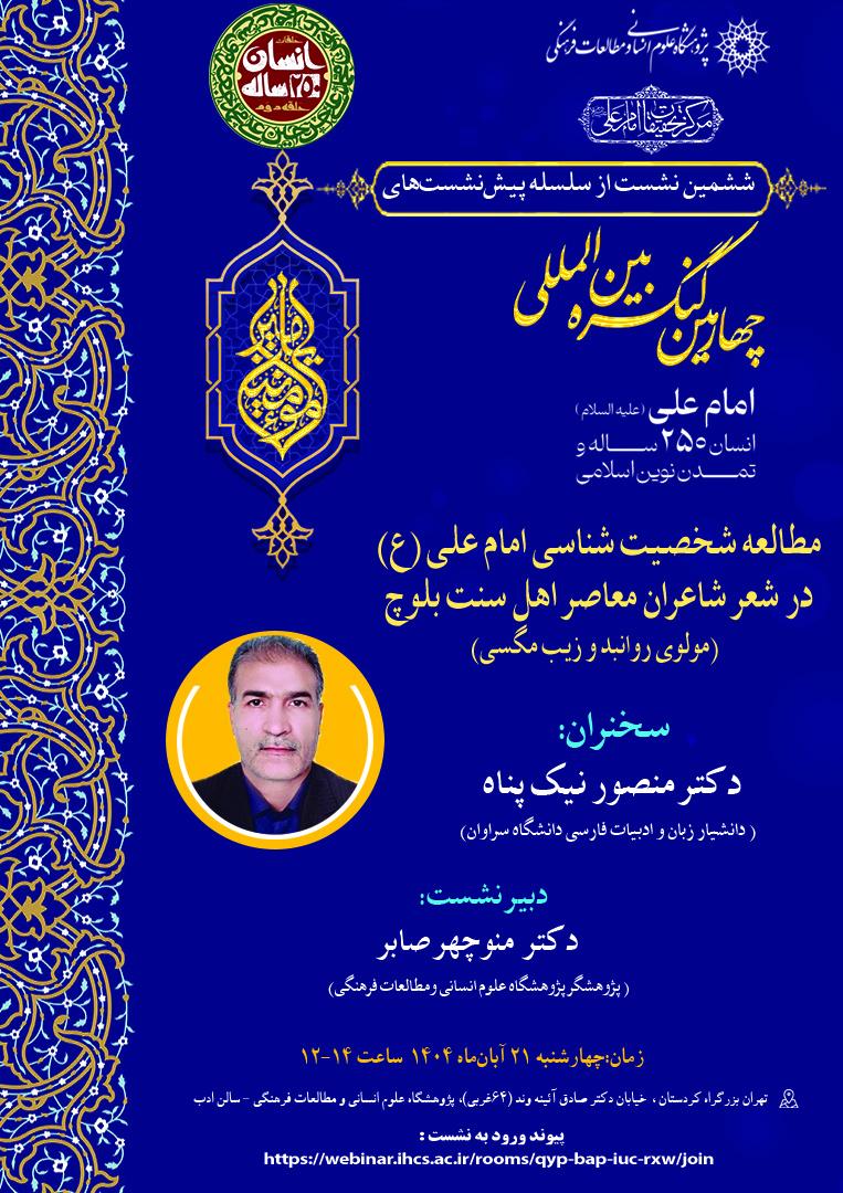 نشست «مطالعه شخصیتشناسی امام علی (ع) در شعر شاعران معاصر اهل سنت بلوچ» برگزار میشود